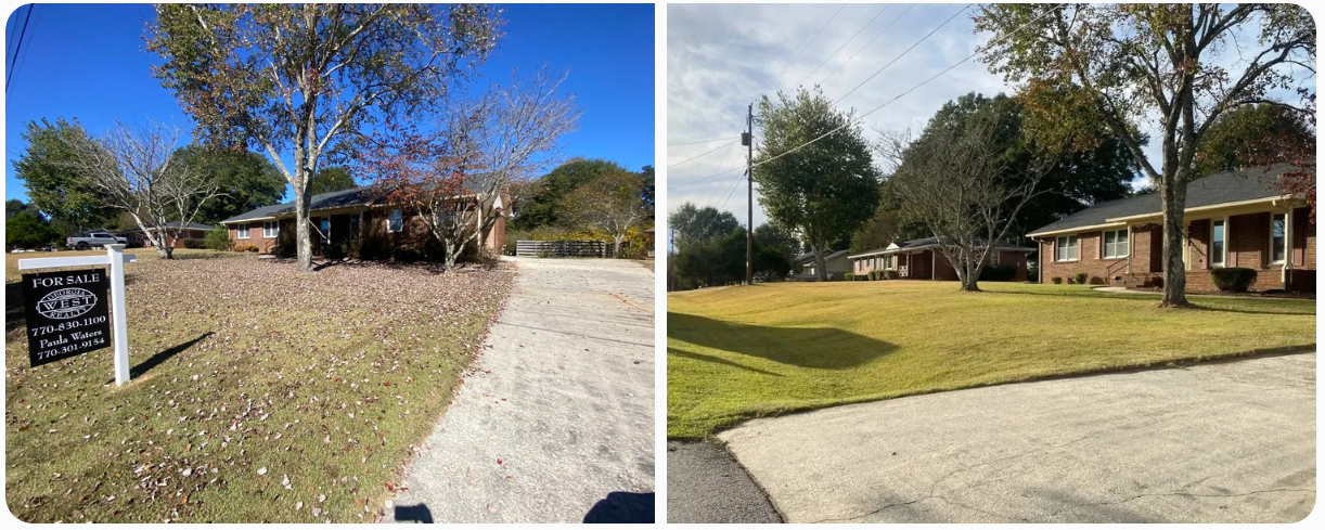 Properties requiring first-time cuts or heavy overgrowth may be quoted separately as cleanup services.